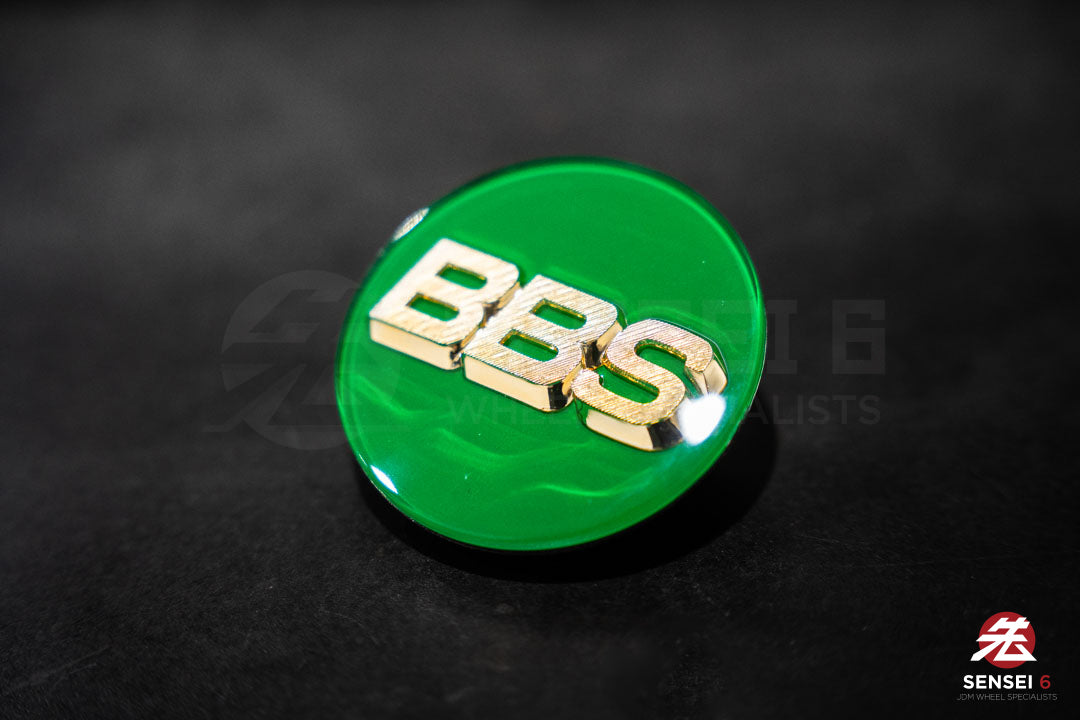 Genuine BBS Japan 70 mm center caps that have been professionally refinished in Green/Gold. Since BBS Japan does not offer this color combination in 70mm, we modified original BBS caps by changing the colors of the existing pieces while retaining authentic OEM parts.